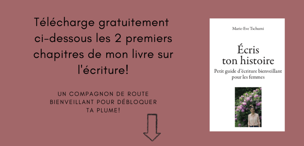 Je m’appelle Marie-Eve, et j’accompagne les femmes de Suisse romande qui veulent écrire et qui ont des difficultés à trouver l’élan pour aller jusqu’au bout d’un projet. Je t'aide à identifier tes blocages d’écriture et à aller jusqu’au point final.